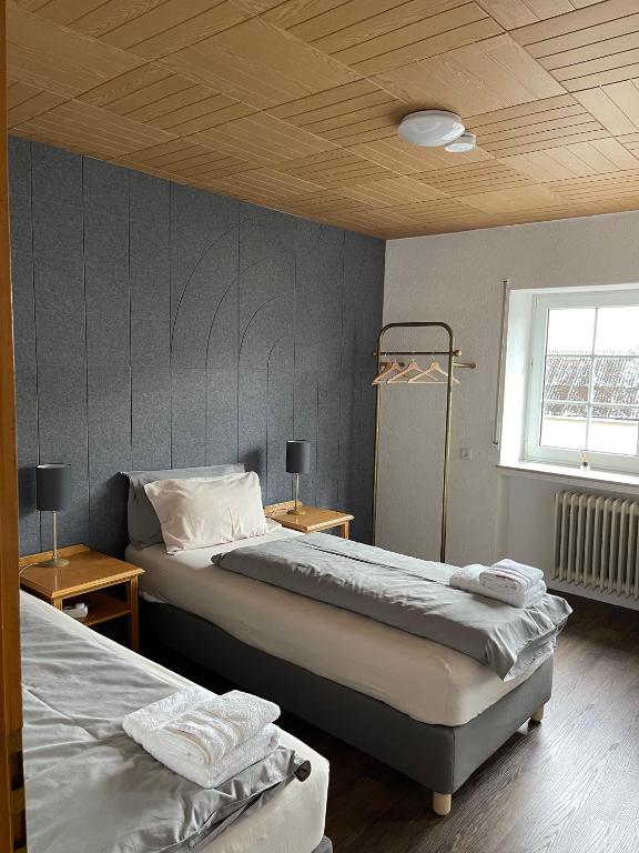 Komfortables Doppelbettzimmer und frischer, Bettwäsche. Ausgestattet mit Haartrockner, sauberen Handtüchern und Toilettenartikeln. Nur 500 Meter vom Busbahnhof Daun entfernt. Absolut zentral in der Innenstadt von Daun gelegen, und nur 1 km vom beliebten Maare-Mosel-Radweg entfernt. Ideal für Reisende, die Komfort und Bequemlichkeit schätzen. Das Restaurant mit gutbürgerlicher Küche befindet sich im Haus.