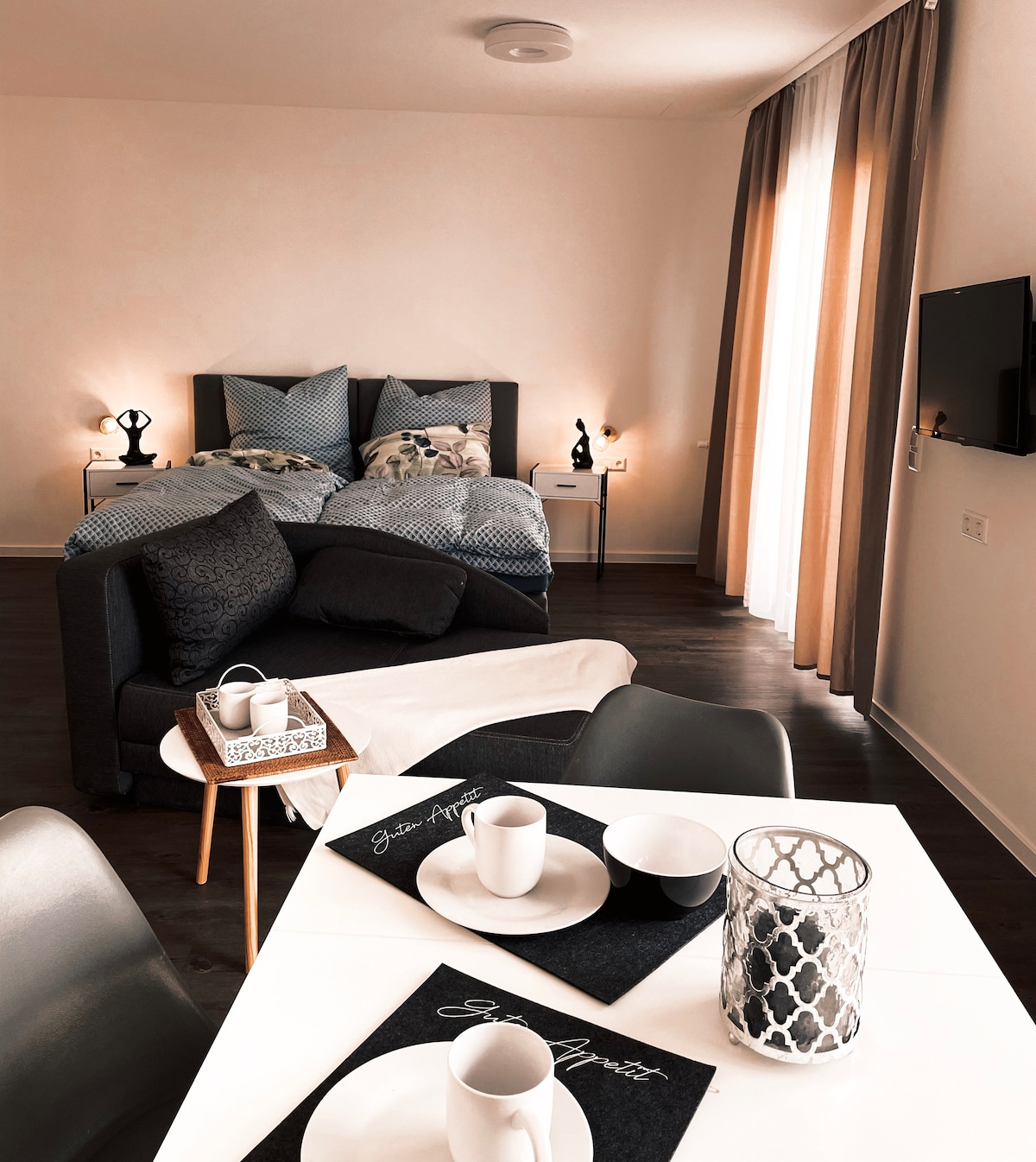 Hello, Welcome to the 3* Hotel Villa Bassermann! Our exclusive apartment awaits you for your short or long-term stay in Schwetzingen and offers you a great atmosphere and the best comfort: → 1 comfortable queen size bed 160x200 → 50 inch Smart TV & Sky access → Breakfast buffet for €17.90 per person/day → central location near Schwetzingen Castle