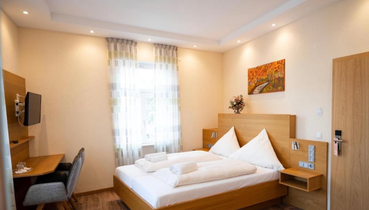 Hello, Welcome to the 3* Hotel Villa Bassermann! Our exclusive apartment awaits you for your short or long-term stay in Schwetzingen and offers you a great atmosphere and the best comfort: → 1 comfortable queen size bed 160x200 → 50 inch Smart TV & Sky access → Breakfast buffet for €17.90 per person/day → central location near Schwetzingen Castle