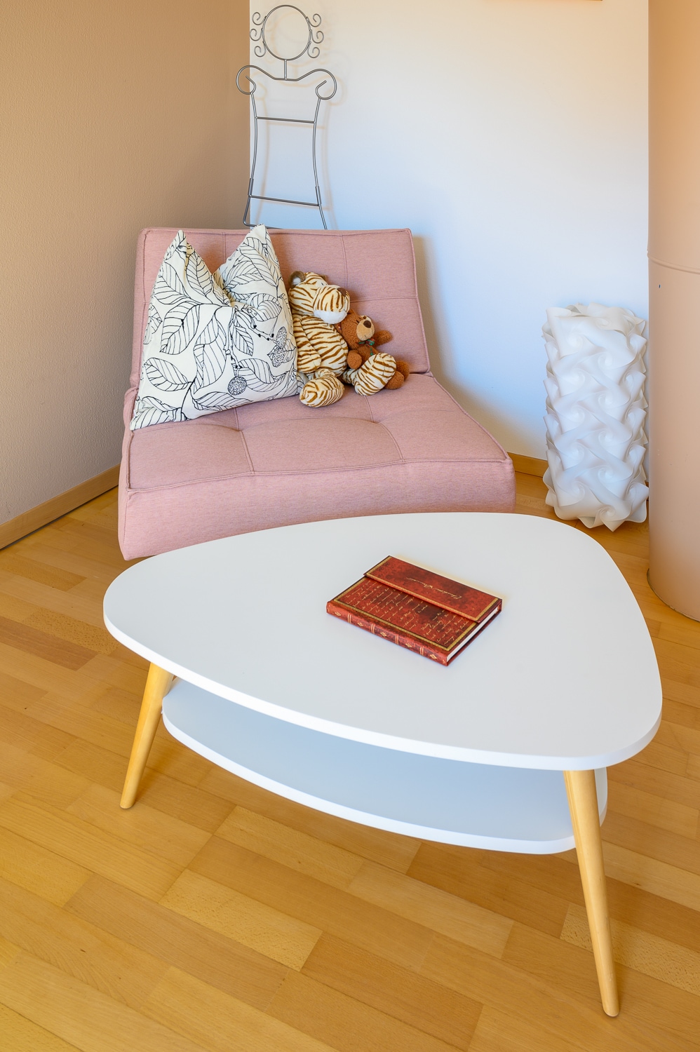 Es handelt sich um eine helle und moderne 1 Zimmerwohnung mit großem Balkon. Die Wohnung ist 1 Jahr alt und befindet sich in einem 7 Parteien Haus. Dank der außergewöhnlichen Konstruktion hat man an allen Seiten Fenster. Das macht die Wohnung sehr hell und freundlich. Sie eignet sich am besten für 2 Personen. Das Sofa kann als Bett umfunktioniert werden. Allerdings ist die Schlaffläche nur für ein Kind geeignet.