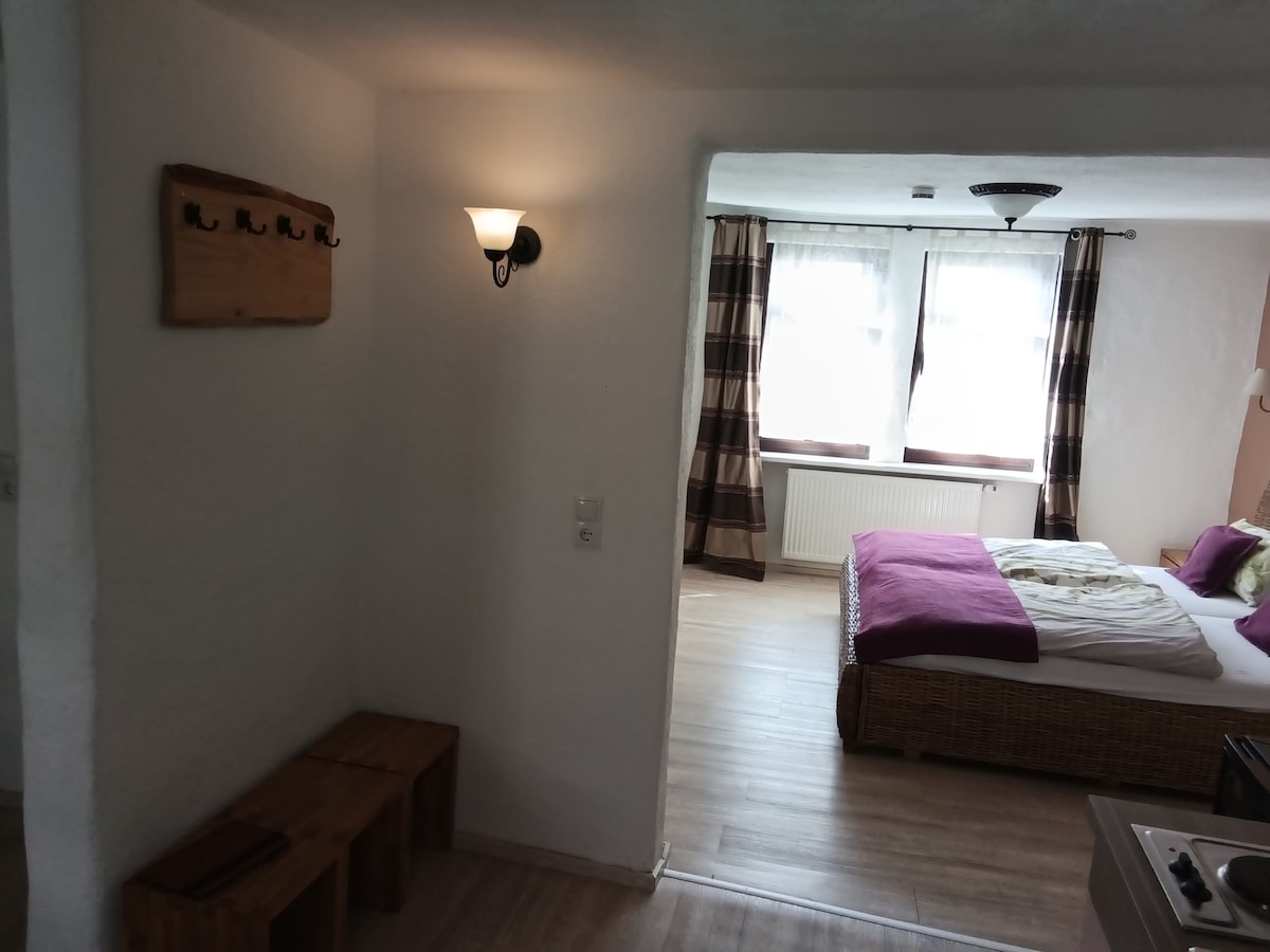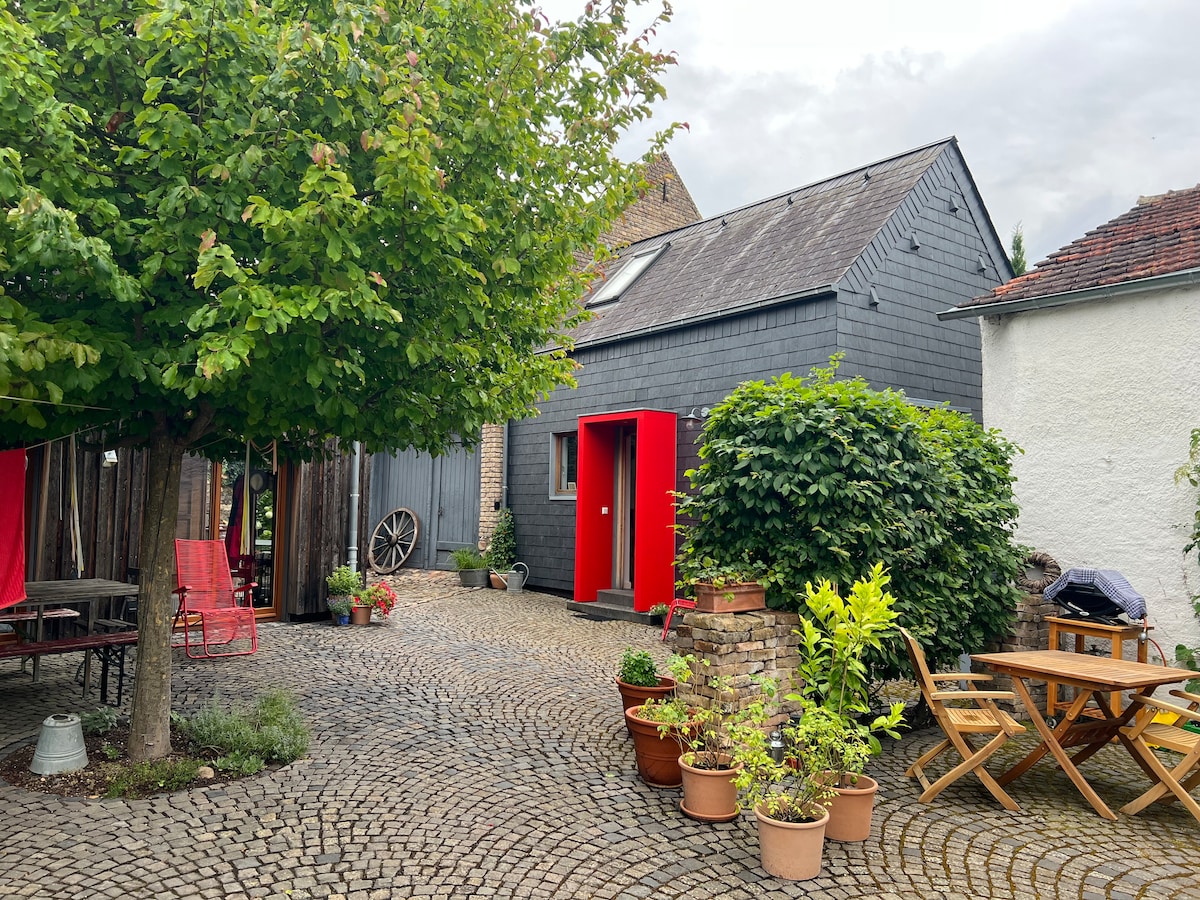 In the centre of the wine village of Bechtheim (pop. 1800), on a residential road with hardly any traffic, you have the renovated farm worker's house of a former winery all to yourselves. The kitchen is our little museum, but it can also be used. On the second floor there are two bedrooms (one with a double bed, one with two single beds) and a bathroom. We do not have a television! But we do have a beautiful garden, accessible 10 meters across the courtyard (shared use until 10 pm).