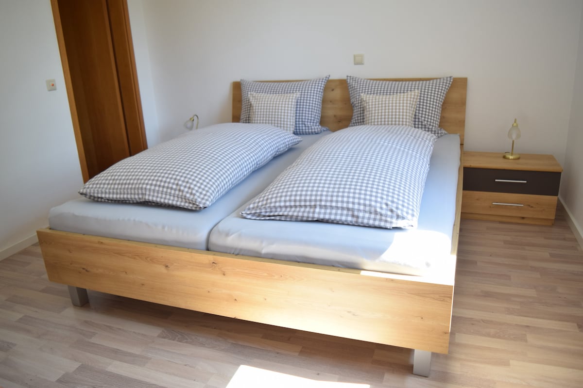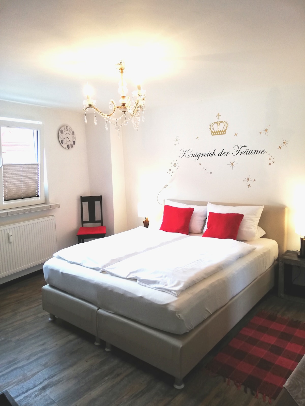 In unserer historischen Hofreite in Friedrichsdorf haben wir für Gäste eine schöne Zweizimmerwohnung mit etwa 50 Quadratmetern. Die Wohnung verfügt über eine voll ausgestattete Einbauküche im Wohn- und Esszimmer, ein Schlafzimmer mit Doppelbett, ein Schlafsofa mit zwei Schlafplätzen und ein großes Tageslichtbad mit Doppelwaschtisch und großer Dusche. Zudem gibt es eine eigene Terrasse mit Sitzmöglichkeit.