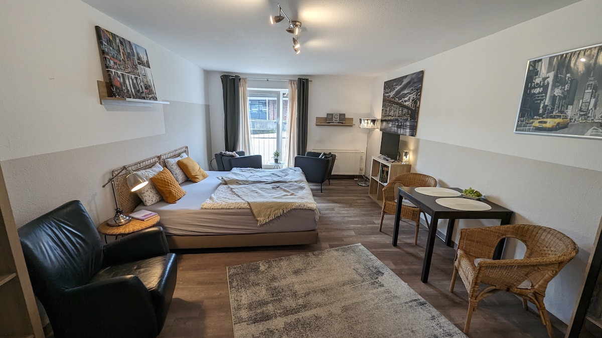 Eine besondere Unterkunft im Loftcharakter. Ein mit viel Liebe zum Detail umgebauter Stall mit Doppelbett&Schlafcouch für 3 -4 Personen/Paare. Ein großzügiges Badezimmer mit Badewanne./Dusche. Offener Raum mit Küche zur Selbstversorgung. Privater Außenbereich mit Tisch und Gartencouch. Trotz geteilten Grundstück mit einem historischen Haus komplette Unabhängigkeit und Privatsphäre. Für Naturliebhaber ein perfekter Rückzugsort am Waldrand. 8 min zum Baldeneysee. ÖV (5 min zum Bus/14 min S-Bahn)