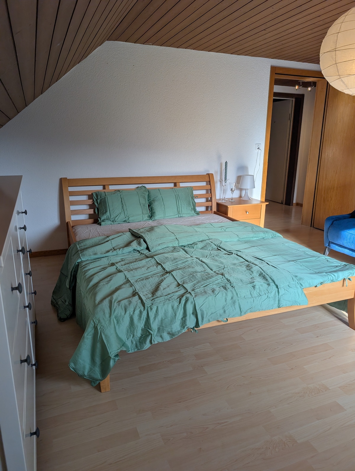 Es handelt sich um ein Appartement in einem Einfamilienhaus. Er verfügt über ein eigenes Badezimmer sowie Küche. Es ist ausgestattet mit einem 140 cm Bett. Der Raum bietet, aber Platz für mehr Personen (Schlafsofa mit eigener Matratze). Kinderbetten können auf Wunsch ebenfalls zur Verfügung gestellt werden. Die Lage ist ruhig und sehr zentral. Parkplätze für Fahrräder und Autos sind vorhanden direkter Zugang zum Garten mit eigenem Sitzplatz. Wir freuen uns auf Euren Aufenthalt.
