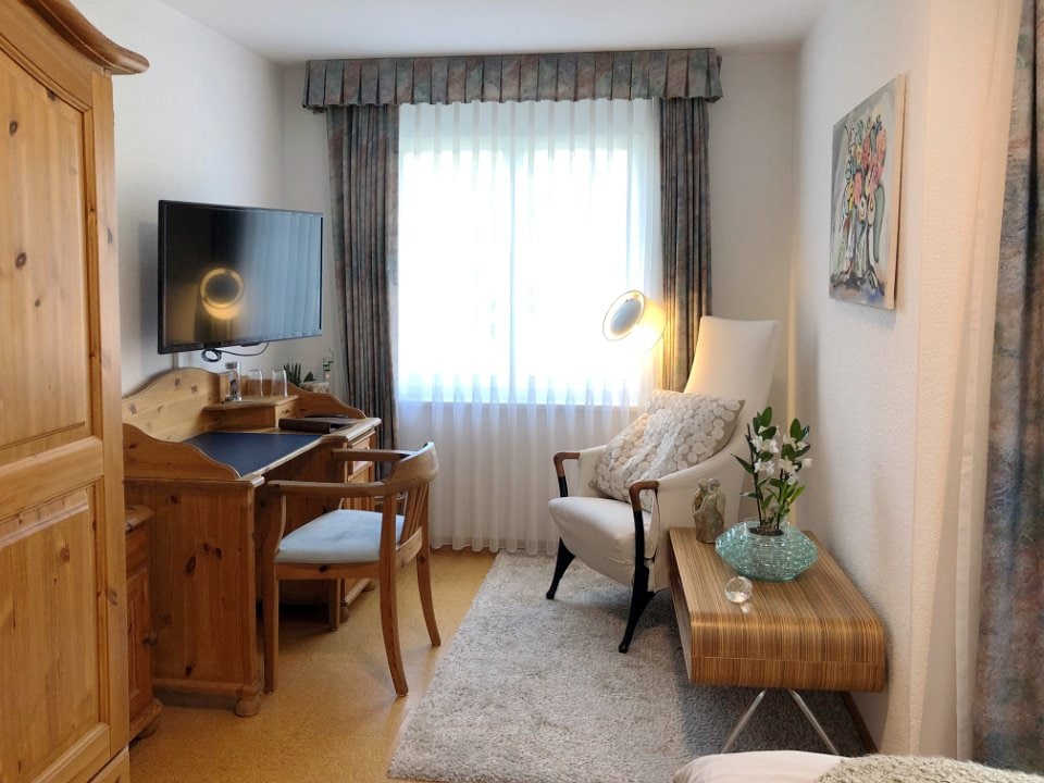 Gemütliches Zimmer mit Blick ins Grüne Unser Gästezimmer auf einem privaten Stockwerk bietet viel Privatsphäre und Ruhe. Es verfügt über ein 140cm Bett und einen schönen Sitzplatz mit Blick ins Grüne. Der private Eingang und ein kostenloser Parkplatz sorgen für zusätzlichen Komfort. Das private WC mit Dusche ist etwas älter, aber sauber und funktional. Gäste können den Grill im Garten mitbenutzen. Perfekt für entspannte Tage in der Natur. Wir freuen uns, Sie bei uns willkommen zu heissen!