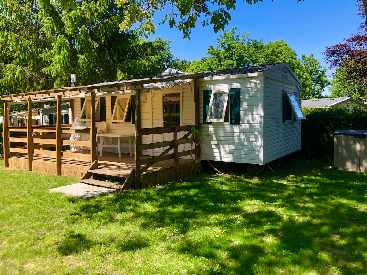Fully equipped mobile home in a peaceful, green setting. Extras: - Fully covered terrace - Mosquito nets on all windows - Blackout blinds - Bed linen, duvets, pillows, and blankets are included in the rental price - Cleaning deposit refunded if the mobile home is left in the same condition as upon arrival. - Pets are welcome at no extra charge, but category 1 and 2 dogs are not allowed on the campsite.