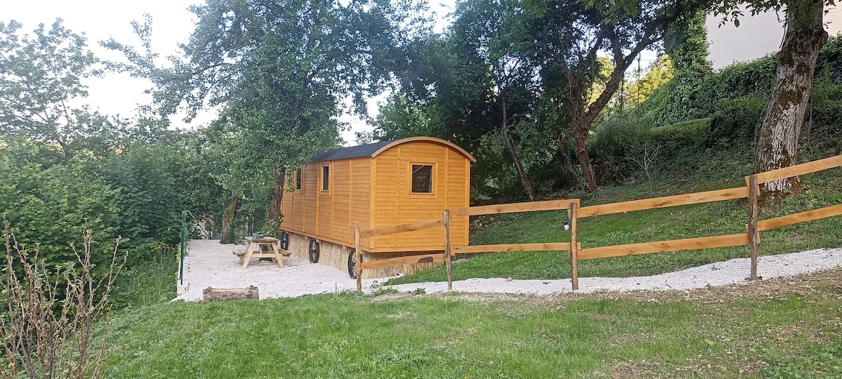 Bienvenue dans notre roulotte de style gipsy d’environ 17m2 située dans un jardin arboré et fleuri. Aménagée avec goût, venez vous ressourcer à l'extrémité d'un petit village boisé de campagne. Le village est situé à quelques minutes de la vallée du Doubs où court la rivière du Doubs, et emprunter la Véloroute Nantes Budapest. Vous pourrez également profiter de belles balades sur les chemins forestiers. www.tiktok.com/@roulottedecharme sur Instagram sandrine_roulotte_de_charme