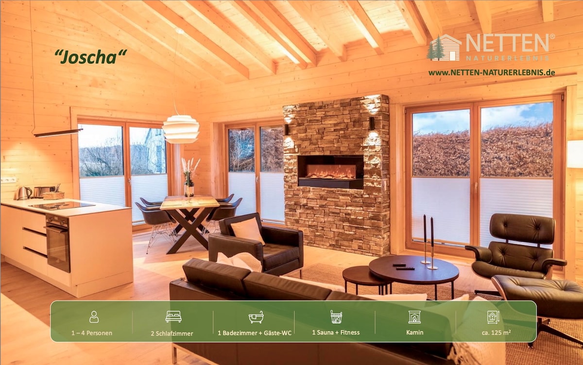 Alles begann mit einem Traum. Natur-Chalets zum Nationalpark. so heißen unsere neuen Ferienhäuser in Allenbach. Die Naturstammhäuser sind innen identisch eingerichtet. Das eine Chalet heißt Franz, das andere Marie-Luise. Wie unsere beiden Kinder. Der Geruch des Holzes bringt gleich die gewünschte Entspannung. Für die Dauer des Aufenthaltes steht Ihnen ein kostenloses E-Auto zur Verfügung. Sie bezahlen nur den Strom fürs Aufladen. Bei dem E-Auto handelt es sich um einen Kona der Marke Hyundai.