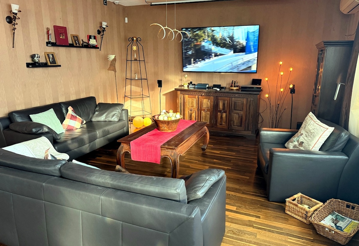 Villa St. Nikolaus is an approximately 150 square metre terrace flat with private sauna, park and own entrance in the border triangle of France, Luxembourg and Germany. It is located on the ground floor of our two-storey villa. Individual luxury and absolute tranquillity offer relaxation during wonderful hikes and cycle tours. Numerous cultural and culinary delights await you in the region, France is just a stone's throw away.