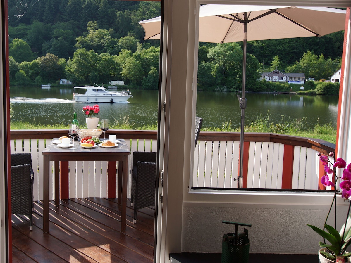 Live directly on the Lahn River with a wonderful view of Lahneck Castle from the sunny southwest balcony. Use the house’s kayaks for free and explore the Lahn. Fishing, hiking, cycling, water sports, or exploring the amazing city of Koblenz (only 6 km away) – all of this can be perfectly enjoyed from this dream house. It is located in the middle of the UNESCO World Heritage Site of the Middle Rhine Valley, which has the highest density of historic castles and fortresses in the world.