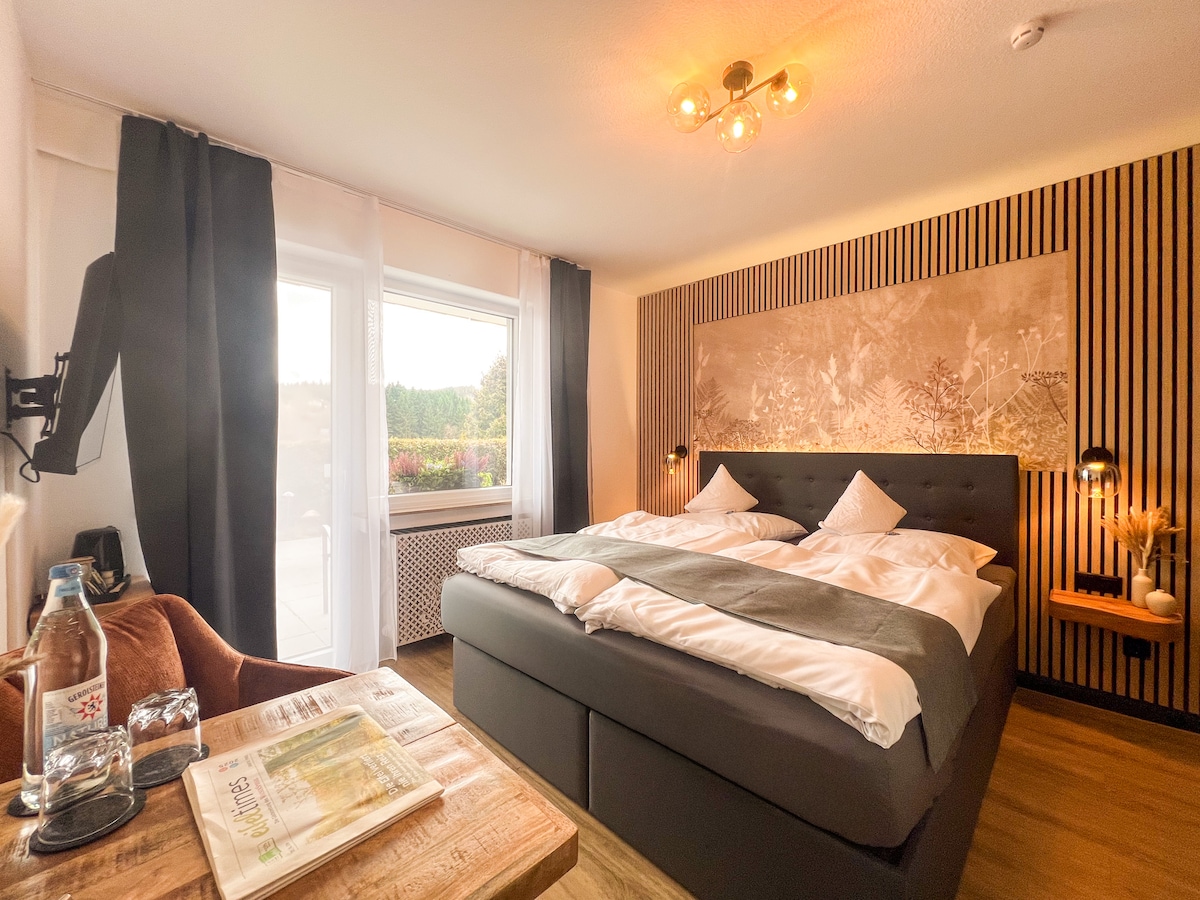 Herzlich Willkommen mitten im Nationalpark Hunsrück direkt am Wander- und Skigebiet Erbeskopf. Unsere 94qm große im Jahr 2021 komplett neu renovierte Ferienwohnung befindet sich im Untergeschoss unseres Anwesens mit direktem Gartenzugang (5000qm) und bietet allerlei Annehmlichkeiten um Ihnen Ihren Urlaub bestmöglich zu gestalten. Bitte schauen Sie vor Ihrer Buchung unter villa-vorkastell. de Hier finden weitere Informationen zu Ihrer Unterkunft uns unsere AGB. Haustiere gerne auf Anfrage!