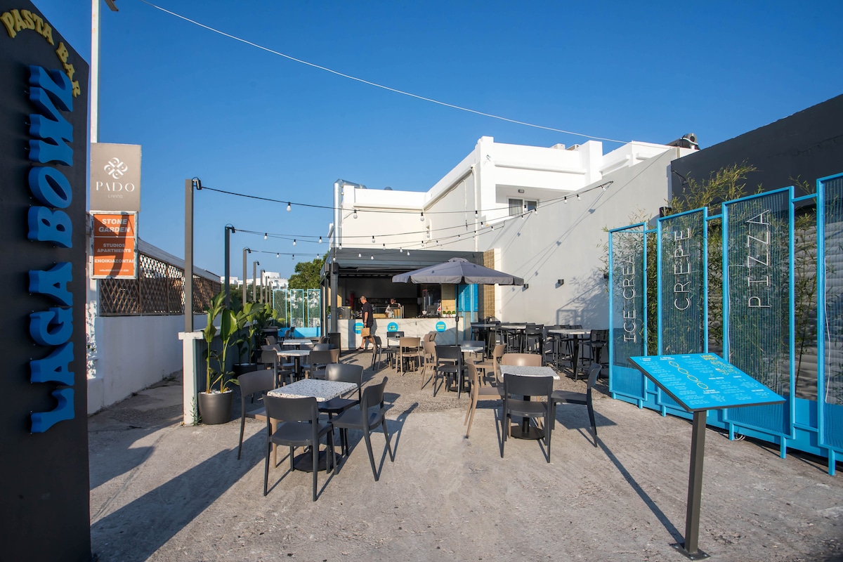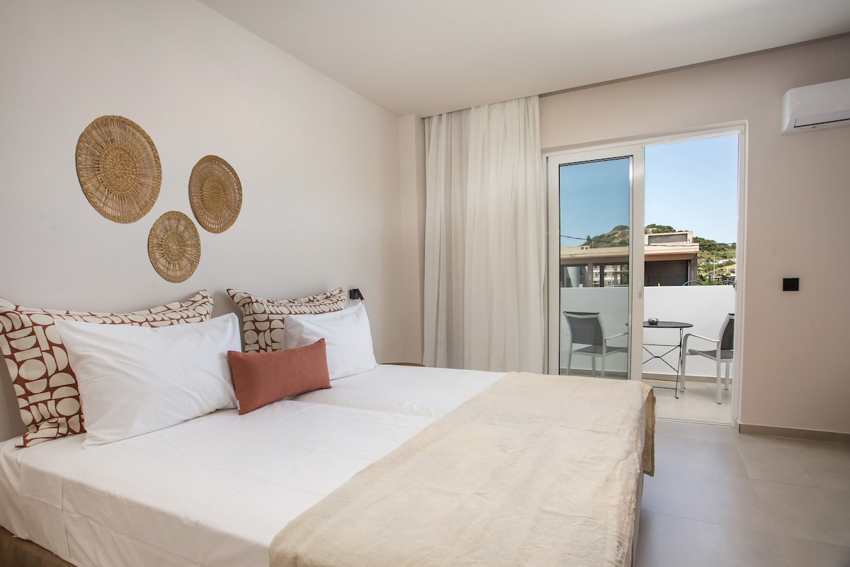 Pado Living is a fully renovated apartment complex in the heart of Faliraki, Rhodes, just a short walk from the beach, restaurants, shops, and nightlife. It offers 13 stylish rooms with A/C, Wi-Fi, mini bar, coffee amenities, and private bathrooms. Some units include balconies or a private terrace. Guests can enjoy a cozy shared outdoor space. Breakfast is available upon request, served in-room. Ideal for couples, friends, and small families.