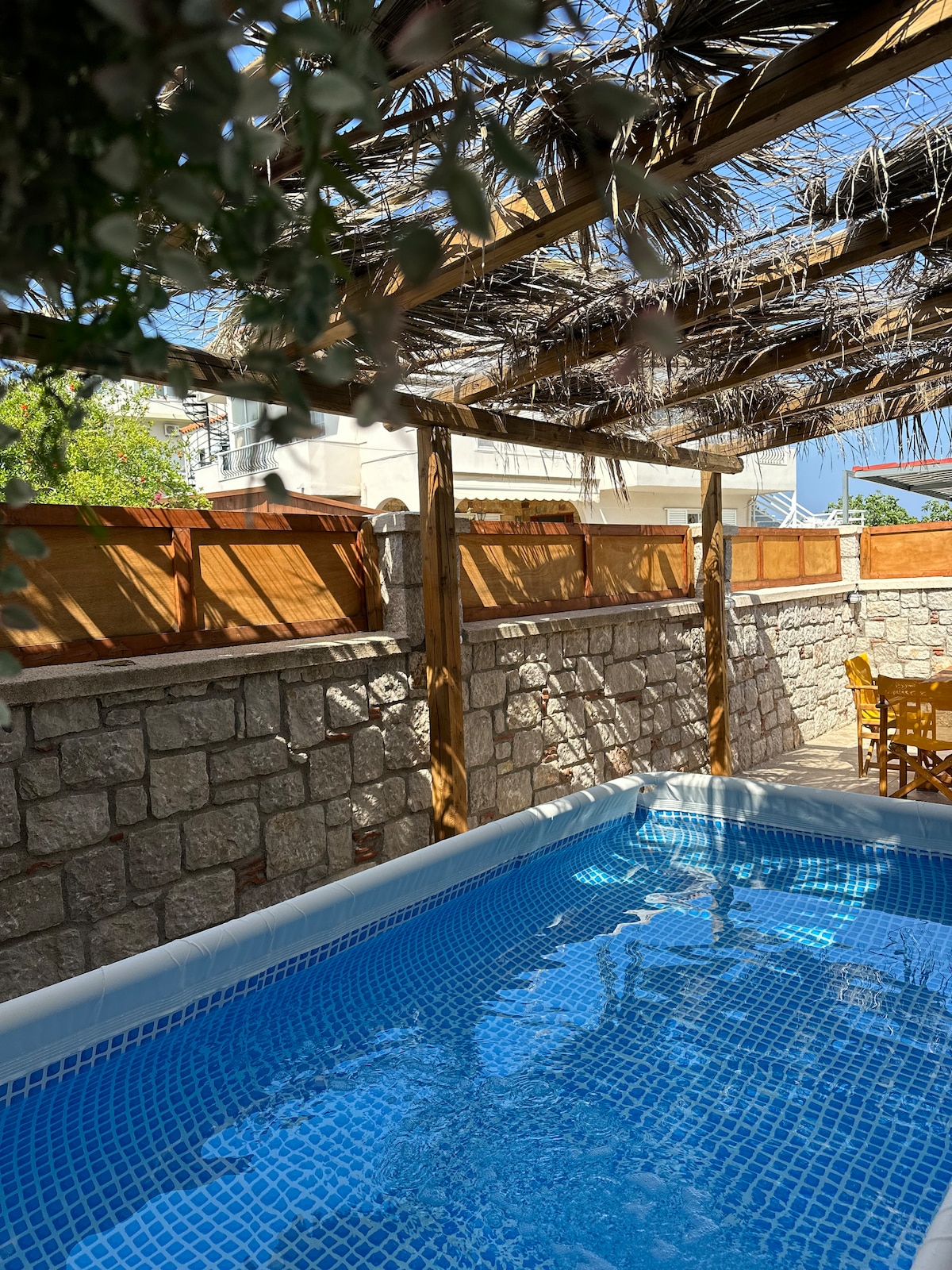 Recently renovated neoclassical house , built with Italian influence. Consisting of first and ground floor with private backyard and a dipping-pool with jacuzzi functions. The ground floor can host up to 2 persons on the sofa-bed , having at its floor a private bathroom, the kitchen and the backyard. The first floor can host up to 2 more persons with a queen-size bed , a chilling area and a private bathroom. Our home is located in one of the most traditional areas in the center of Rhodes.