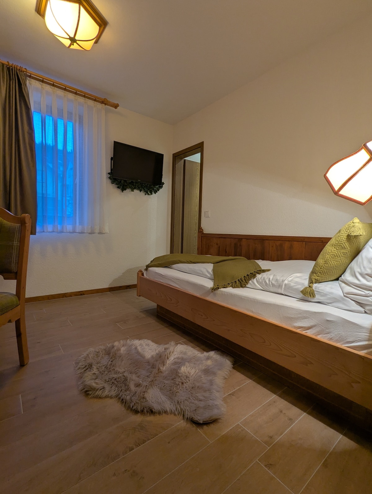 Apartment mit Wohn-/Schlafraum. 1 Doppelbett (1,80x2,00m) u. 1 Einzelbett (0,90x2,00m)auch 1 Kinderbett ist vorhanden. Voll ausgestattete separate gemütliche Wohnküche und Duschbad. Im Sommer sind Sitz+Liegemöglichkeiten im Garten. Im Winter ist die Loipe vor der Tür Private Sauna im Sommer mit Außendusche zu mieten (inkl. Handtücher,Bademantel und Aufguss von 10.00-18.00Uhr) Gerne könnt ihr im Sommer nach Voranmeldung Fahrräder mieten. Schlitten für Kinder geben wir euch gerne.