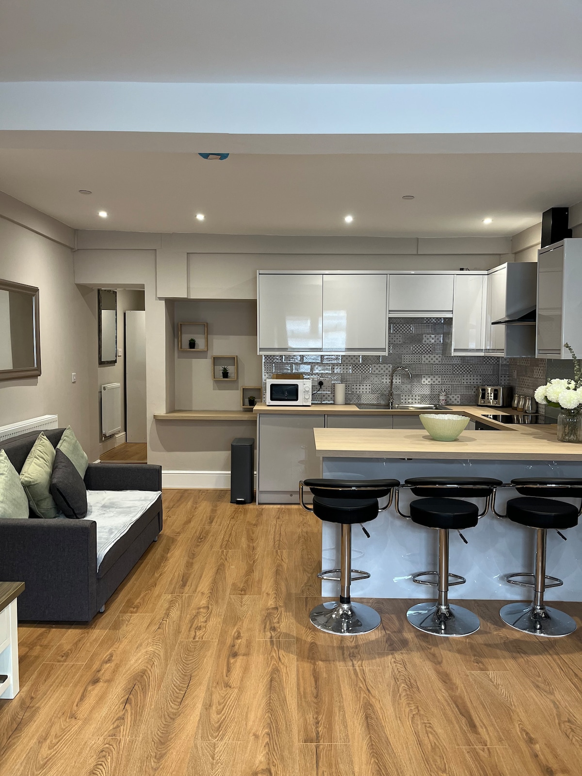 Sit back and relax in this individual, newly renovated and stylish self contained flat in North Cardiff. Perfect for one and cosy for two. Separate bedroom and bathroom and combined living space and kitchen. Flat situated on first floor and shared external entrance with one other flat. Dedicated off road parking space included. 4 miles from Cardiff Centre and well served by trains and buses. 2 mins off junction 32 M4 for access to Mid and West Wales.