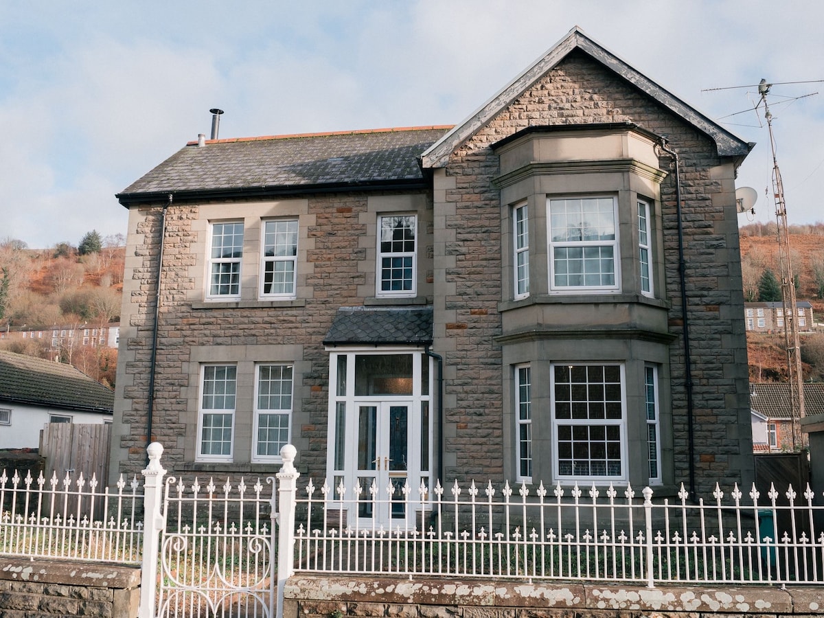 A blue plaque, victorian semi- detached property. In a quiet residential street in the heart of the Rhondda Valley. A spacious and tastefully decorated home. A place to unwind and admire the views, to dine and relax. Free wifi to work from home. A base to explore the surrounding area. A garage on sight to store bikes. Train Station 10mins walk, Tower Zip World is 5 mins car journey. Brecon Beacons 30mins. Bike Park Wales 30mins . Four waterfalls 30 mins,