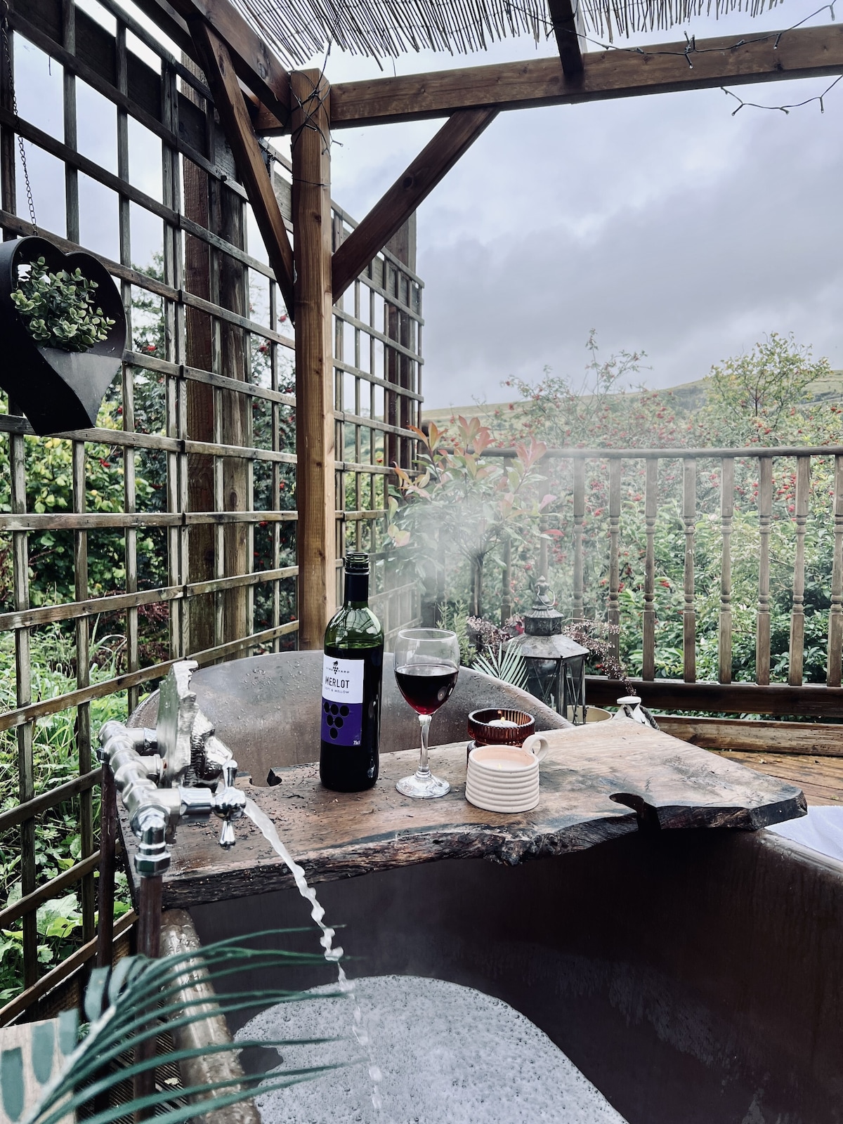 Nyth Coetir(林地之巢),带有顶棚的热水浴缸