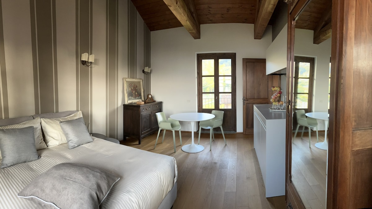 In the UNESCO territory of the Alps and near the Langhe, a charming small wooden house, located in a tiny 7-house hamlet, immersed in the woods. Intimate and cozy, it overlooks your fantastic private pool and is surrounded by a large, flowering garden, all exclusively for you. Sit on the cool grass in the early morning. Listen to the birdsong and soak in the peace and nature. Your holiday will be unforgettable: discover the most authentic side of Piedmont and embrace total relaxation.