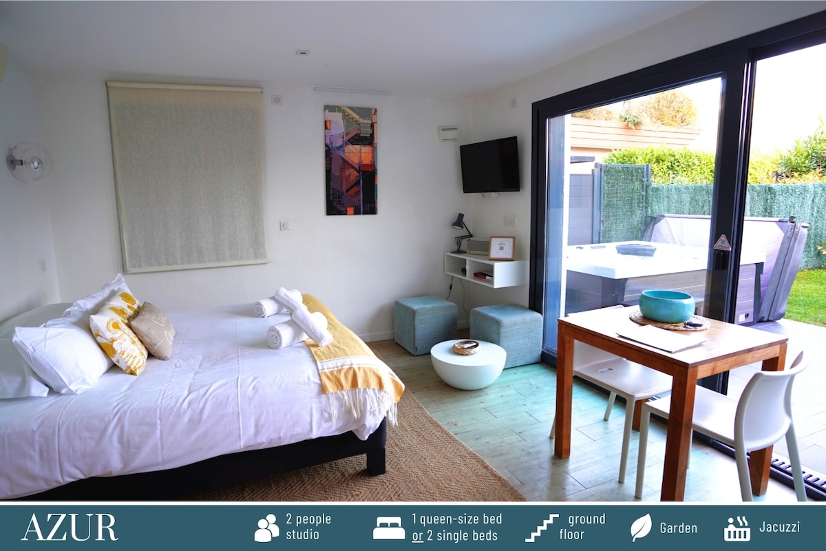 平均评分 4.93 分(满分 5 分),共 14 条评价Cote Ouest AZUR:带按摩浴缸的花园层单间公寓