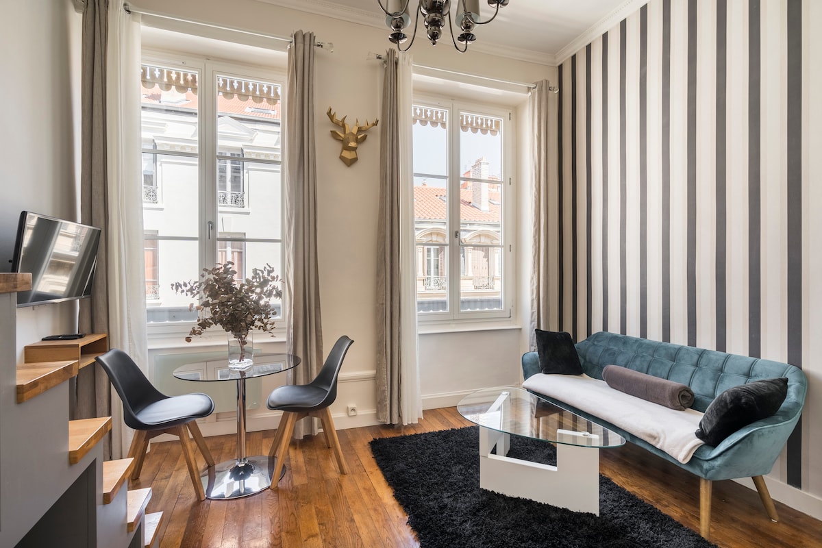Pour un court ou un long séjour, vous serez dans le cœur historique de Lyon dans cet appartement que mon épouse et moi avons rénové pendant 6 mois jusqu'en Février 2021. Il est situé au dernier étage -avec vue- dans un immeuble typique, datant du XIXe siècle, à 100 m de la place des Terreaux et de l'Hôtel de Ville de Lyon, à moins de 200 m de la station de métro "Hôtel de Ville" et des principales lignes de bus (C3) , et à environ 5 min du Vieux Lyon à pieds.