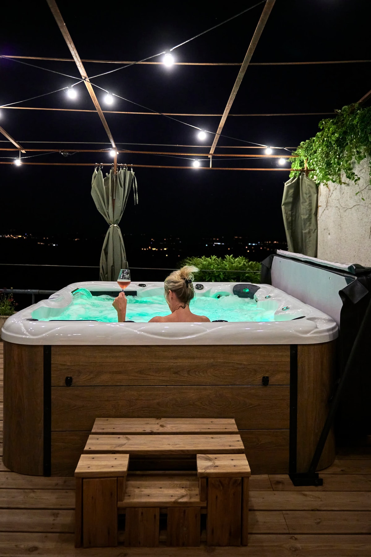 "La Suite" est une chambre d’exception située à Chiroubles, au cœur des crus du Beaujolais. Dotée d’un Spa extérieur privatif, cet espace d’environ 70 m2 vous offrira un confort optimal (douche XL, TV connecté, enceinte Marshall, kitchenette équipée, wifi…) avec une vue à couper le souffle ! En mezzanine, vous trouverez un lit King-size avec des draps en lin pour votre plus grand bonheur.