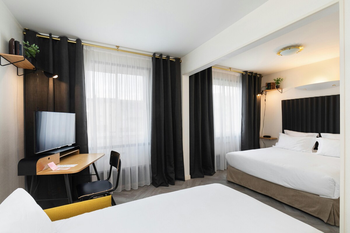 Relax in a cosy and comfortable double studios (20-27sqm), equipped with a double bed or pull-out bed depending on flat configuration, soundproof windows, blackout curtains and a flat screen TV. You will also enjoy the work area with wireless internet, a safe and the kitchen corner that will make your stay easier.