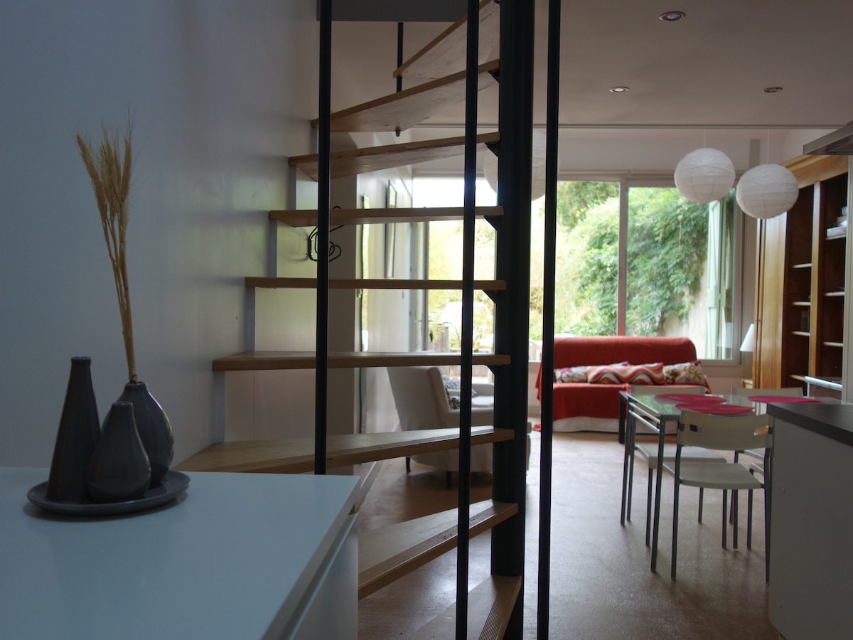 Lofts atypiques climatisés, au calme, dans une maison de charme entièrement rénovée. Situé en plein centre de Genas, village nature, à 25 minutes du centre de Lyon, très proche de l'aéroport Lyon St Exupéry, du parc des expositions Eurexpo à Chassieu, du Golf Blue Green de Chassieu, du Groupama Stadium de l'OL et de la LDLC Arena Nous vous accueillerons afin que vous sous sentiez comme à la maison, dans un espace cocooning, avec un balcon ou une belle terrasse .