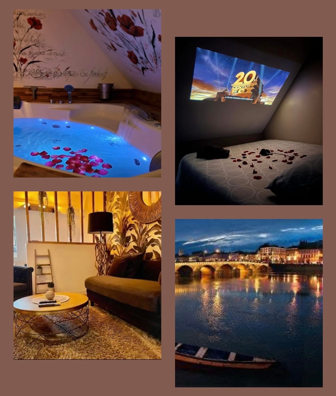 Loft cosy situé au coeur de MÂCON avec son spa balnéothérapie 2 places vs pouvez vs rafraîchir ou vs réchauffer de 25c à 42c avec ses pétales de rose Bouteille offerte Cafés,thés à disposition ... Netflix Situé dans un immeuble bourgeois classé ( remarquable) fête interdite Places en bas de l’immeuble payantes ,gratuit jours fériés et de 18h à 8h00 Places de parking gratuites à 300m Rue bigonnet et rue du concours 300m des quais de Saône Restaurans,bars,commerces,gare,marché..