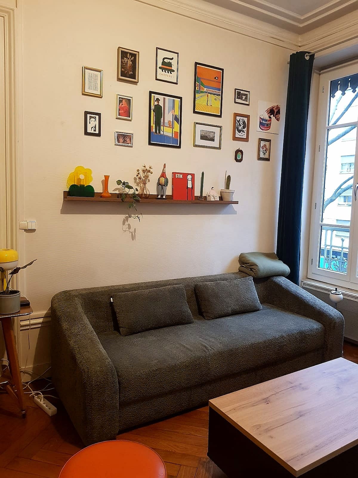 A compendium of charm. Quiet, located next to small shops, restaurants, 6 minutes from the metro and 4 min. of the Town Hall. Modern, cozy and peaceful comfort to spend warm moments. Renovated duplex, located on the 2nd floor. Pleasant for 2, 4 pers. possible (ideal family). On the night side, a bedr. on the mezzanine (height 1m75) with a 140*190 bed, and a 2-seater sofa bed 185*200 or 2 90*200 beds downstairs. SDD and separate toilets. Fiber WIFI, TV with 180 channels, Bluetooth speaker.