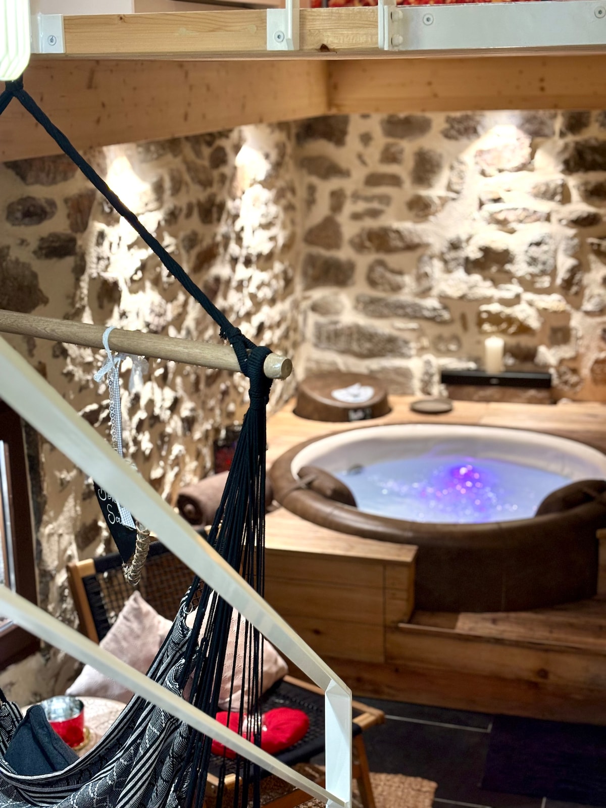 Séjournez dans un cocon Feng Shui niché dans un château d’exception : jacuzzi privatif, ambiance zen et énergie apaisante pour un moment à deux. À seulement 15 km du centre historique de Lyon, en plein cœur du village de Brindas, découvrez un appartement atypique conçu dans une approche respectueuse du vivant et de l’environnement. Nichée dans l’enceinte d’un ancien château, cette demeure en triplex allie la noblesse de la pierre et du bois à un confort contemporain.