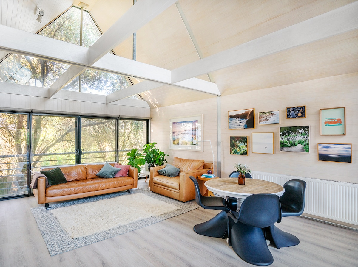 Tiny in size but so much to love, our thoughtfully made off-grid cabin features panoramic winery valley views and unique personal touches making your stay extra special. Take it all in soaking in a warm bath on your own private deck, plus a Queen bed, you are surrounded by nature yet still walking distance to 3 award-winning wineries, a hatted restaurant feat. a wine list of "local stars, international pours and a local bracket of curious jewels". Close to beaches and wild coastal nature areas.