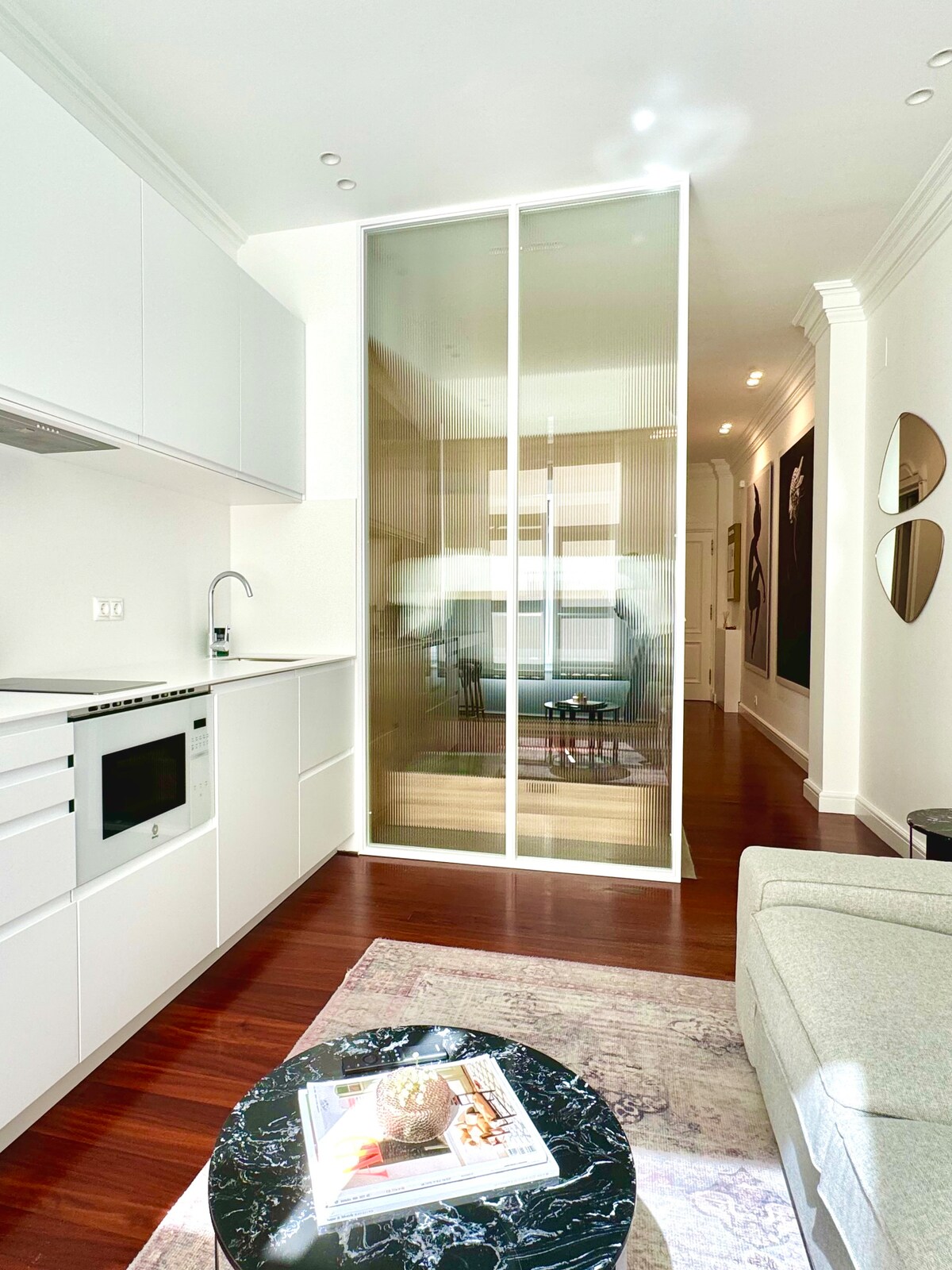 Una experiencia de lujo en este céntrico y luminoso apartamento equipado como una suite de hotel. Edificio histórico. El dormitorio, presidido por una confortable cama King size, Smart TV, balcón y un baño completo. El salón cuenta con una coqueta cocina americana, un comedor, Smart TV de gran formato, una cómoda mesa de trabajo junto al ventanal y un sofá- cama. Dos ventanales de tres metros de altura con balcones que se asoman a la “Puerta del Sol de Vigo”. Próximo al puerto- Islas-Cíes