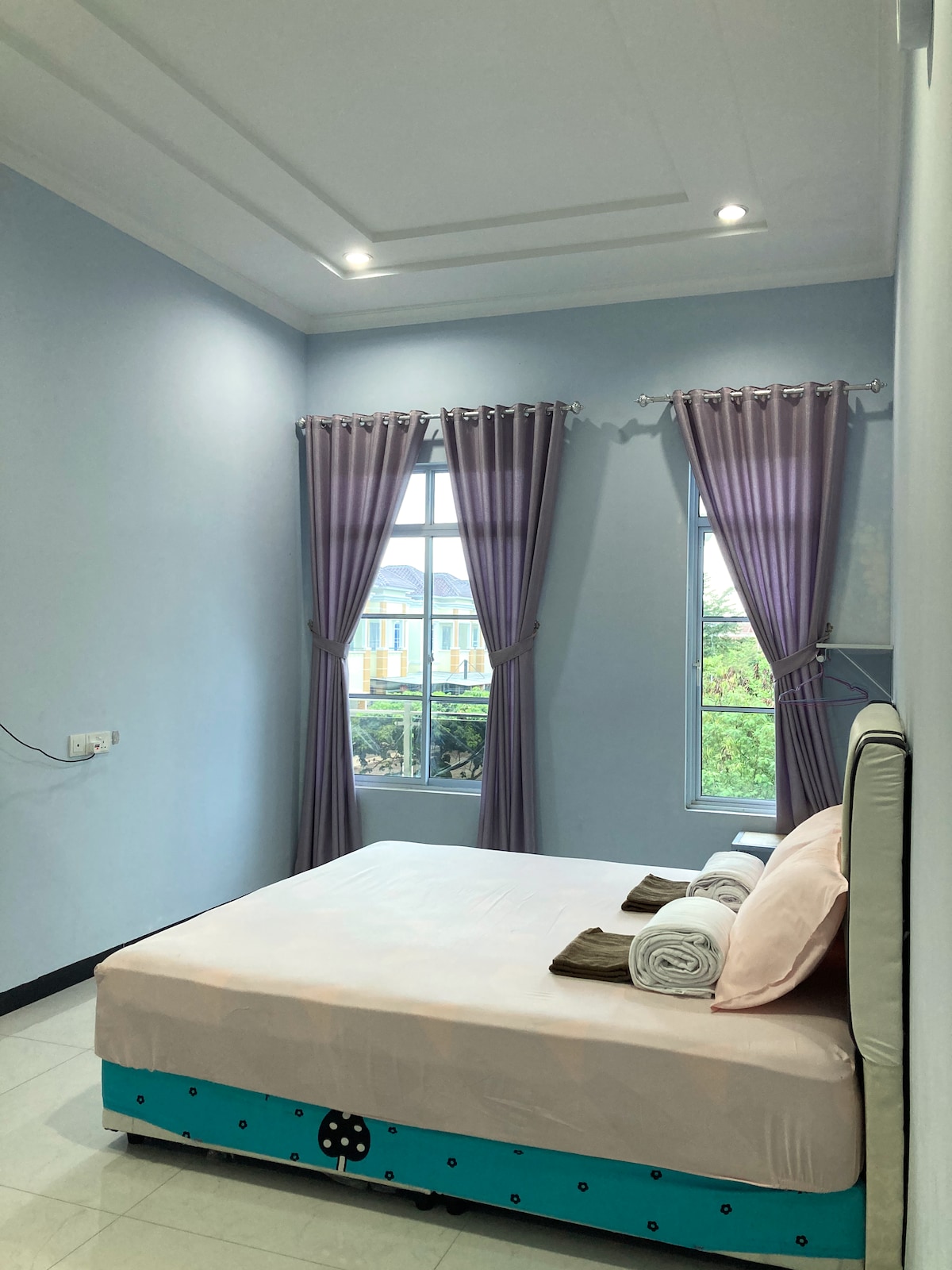 Our homestay is newly fresh built at the highest level of Bukit Indah Sukajadi Batam at Batam Kota area. The air is naturally fresh, cool from the hills of Bukit Indah Sukajadi Batam. Besides, our homestay's view directly faces to the Golf Course of Bukit Indah Sukajadi Batam. You can enjoy playing golf here to fulfill your hobby. The jogging track is also really comfortable and safe for jogging activity. It is equipped with fully-furnished home and spacious area both indoor and outdoor.