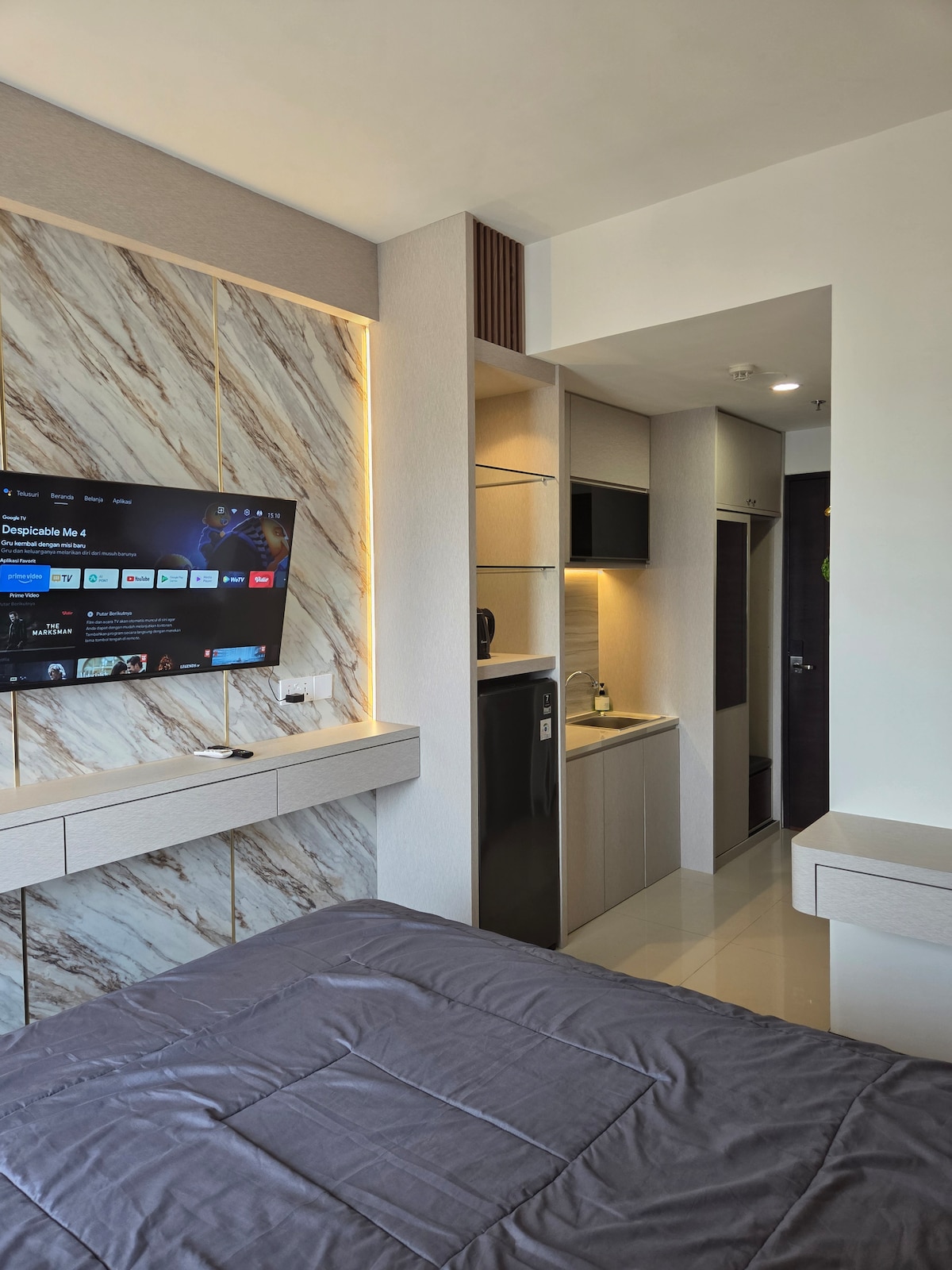 Clean and Cozy 2 Br Apartment in central Batam, newly renovated with Panoramic city view and singapore view. Very spacious, equipped with pantry and dining table, Sofa Bed, 55” Android TV. Location in central Nagoya, only 5 minutes to Ferry Terminal (harbourbay), Nagoya Hill Mall, Nagoya Foodcourt, GrandBatam Mall, BCS Mall, A2 Foodcourt, 10 minutes to Batam Center, 20 minutes to Airport. Super convenient 👍🏻 Swimming Pool and Gym in 5th Floor