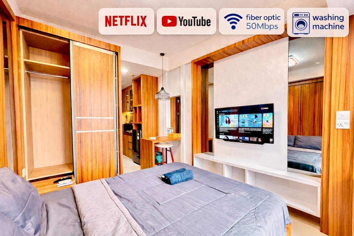 a Japanese Modern Style Studio Apartment in Pollux Tower 1 (Ausleen) 19th Floor City View Very strategic location in Batam; - 2 mins Fanindo Sanctuary Food Court (Marugame udon, Garuda Resto, Kfc, Starbucks, Mcdonald, etc) - 2 mins to Mitra Raya Food Center - 8 mins to One Batam Mall, Mega Mall, Batam Center Ferry Terminal - 25 mins to Hang Nadim International Airport - 20 mins to BCS Mall, Nagoya Hill, Grand Batam Mall