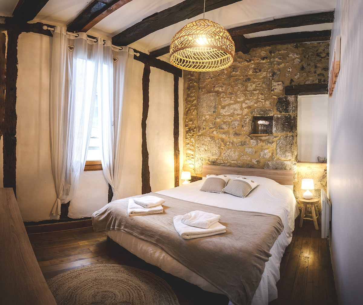 En plein cœur historique, entouré de restaurants, bars et boutiques, grand T2 (50 m2) joliment restauré, lumineux et calme au premier étage d'un immeuble ancien Avec sa grande hauteur sous plafond et ses placards moulurés, il allie charme et convivialité au confort moderne (lit 160, climatisation réversible, espace de travail dédié, fibre et connexion ethernet) Petit parking payant juste en face et parking gratuit des Illustres à 300 mètres Accès voie verte (cyclisme, promenade) à 100 mètres