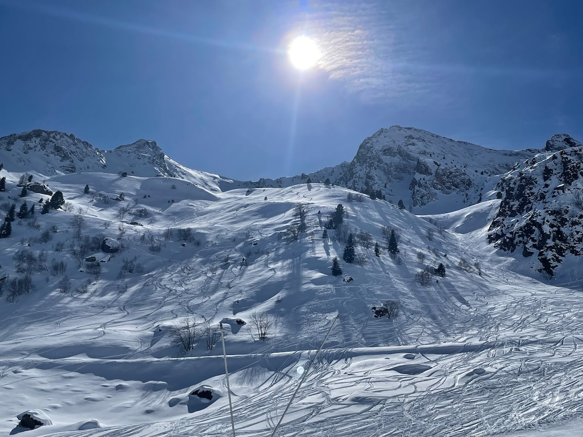 Precioso apartamento a 8 min a pie de las pistas, recién reformado con un balcón con vistas infinitas. Cuenta con dos habitaciones, con camas de 90cm (opción de cama King) con Smart TV y un sofá-cama de 140cm en el salón. También hay un baño completo con secador y un aseo independiente. La cocina está equipada con lavavajillas, lavadora, horno, microondas y Nespresso. Dispone de todos los utensilios necesarios: tostadora, hervidor, exprimidor y batidora. Cuenta con garaje y trastero propio