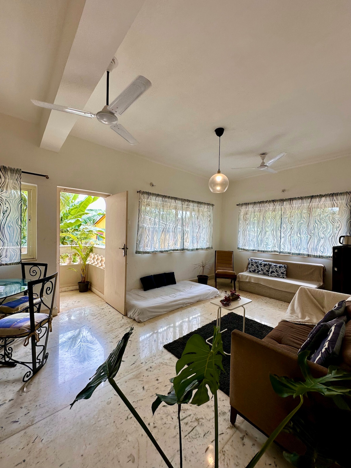 Zeist Uraak is a Goan house located between Panjim & Old Goa. it's a house, not a hotel. So you may see an ant crossing the floor or You might spot a bird building a nest on your window. That’s not a glitch. That’s a real home. Hidden in the quiet fishing village of Ribandar, Zeist Uraak lets you live Goa the way Goans do — unhurried, sun-washed, and rooted. You’re 10 minutes from the city buzz, yet far enough to hear the river breathing at night. This house is for travellers who value culture