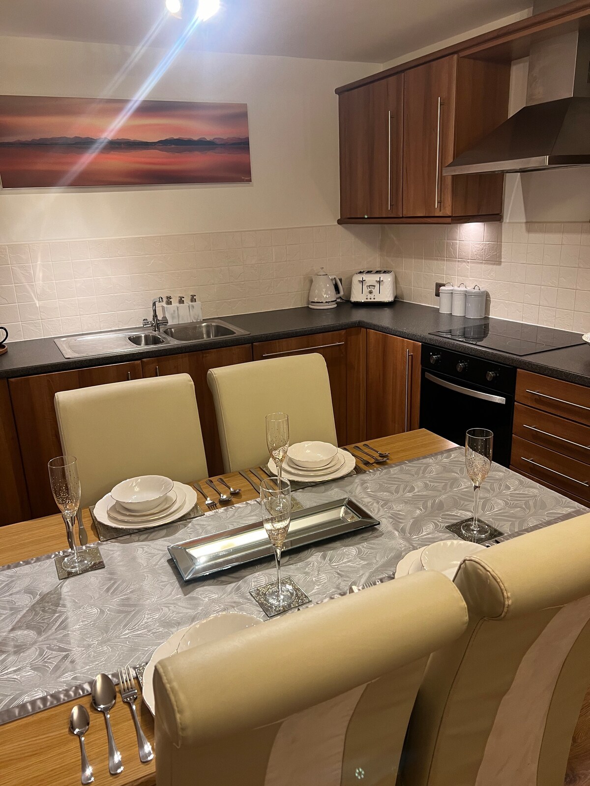 Luxury 3 bedroom lodge for 6 (plus travel cot) with Hot Tub. Located on South Lakeland Leisure Village, a few minutes drive from Junction 35 of the M6, at Carnforth. The lodge has an open plan living/dining and kitchen area. The living area and all 3 bedrooms have smart TV's with Netflix. The master bedroom has a king size bed, walk-In wardrobe and en-suite shower room. 2nd bedroom has 2 single beds and 3rd bedroom has 2 single beds. on-site there is a pub/restaurant looking out onto the lake.