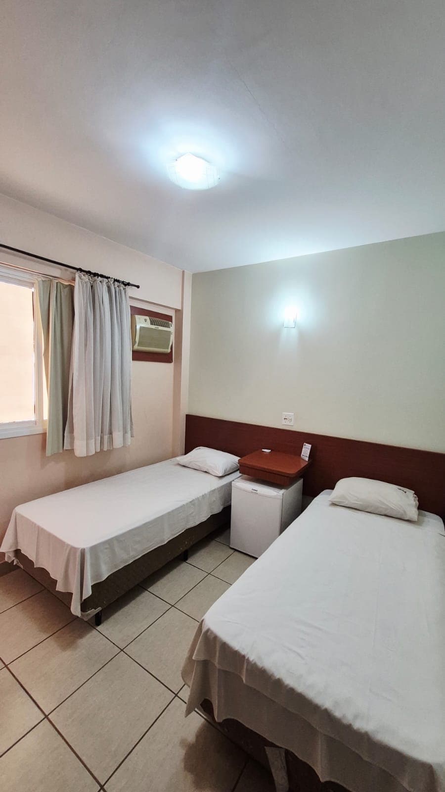 Apartamento Aconchegante para Até 2 Pessoas Descubra o conforto e a praticidade deste apartamento cuidadosamente planejado para sua estadia. Equipado com 1 cama de casal, acomoda até 2 pessoas com total conforto. O ambiente inclui frigobar, banheiro privativo, cortinas blackout para noites tranquilas, área de trabalho funcional, roupeiro espaçoso, TV e Wi-Fi de alta qualidade. Perfeito para relaxar ou trabalhar em um espaço acolhedor e bem ventilado.