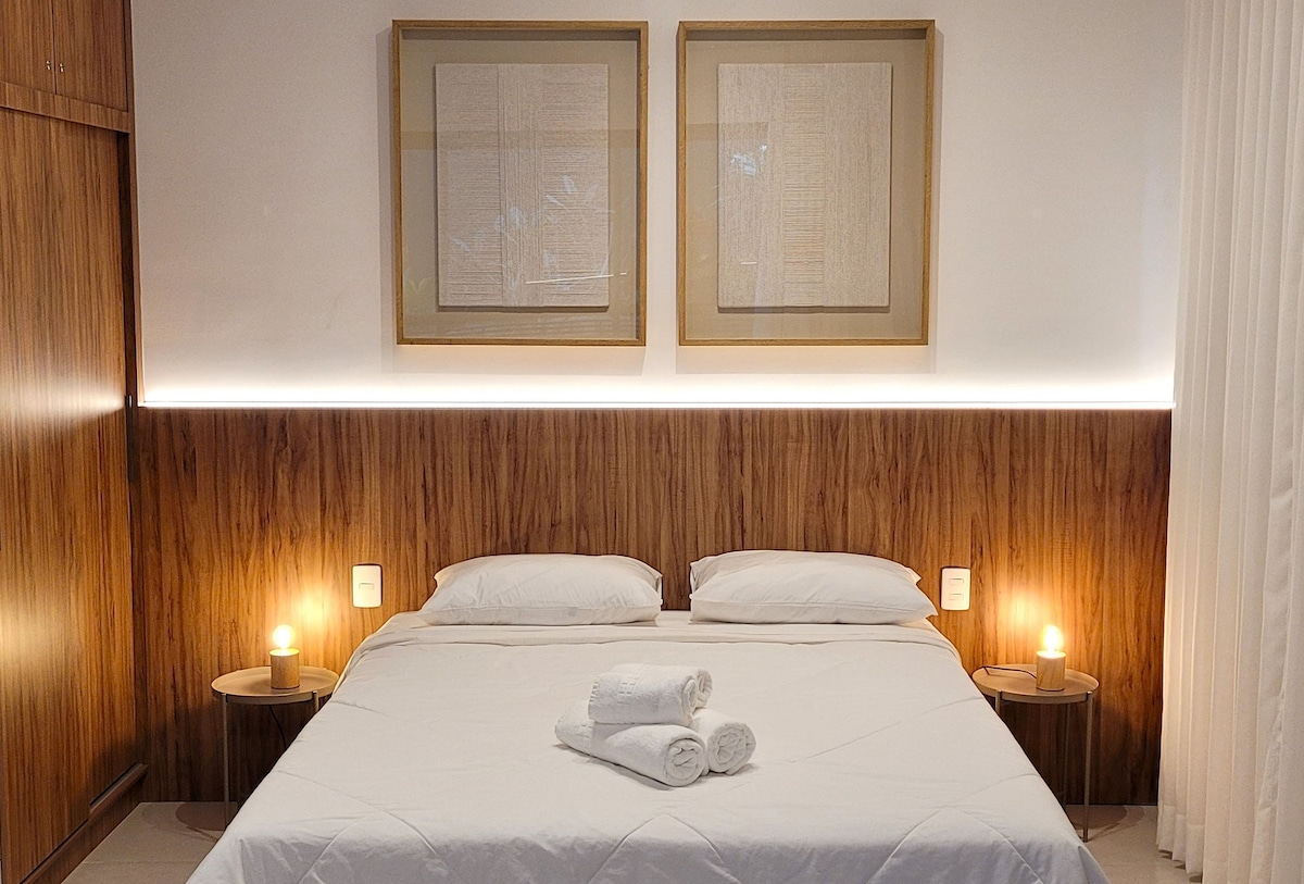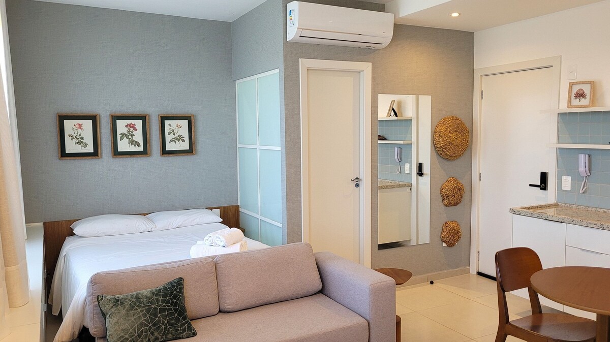 公寓配备无线网络、空调、1个车位、游泳池,靠近Iguatemi