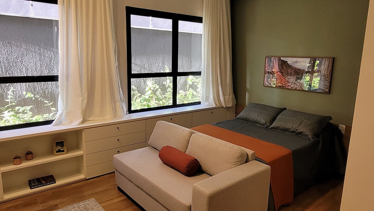 公寓配备无线网络、空调、1个车位、游泳池,靠近Iguatemi