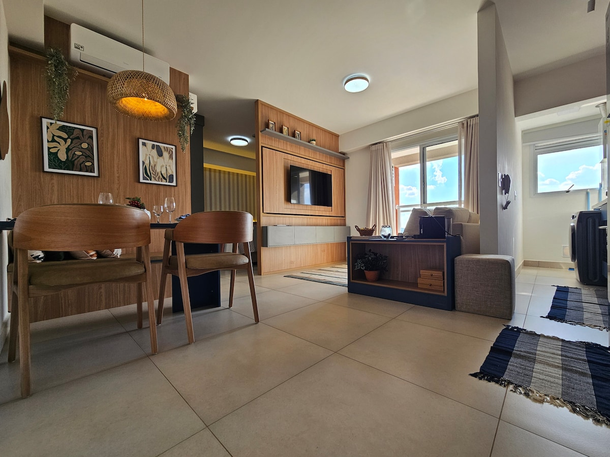 Studio bem localizado próximo a restaurantes, supermercado, farmácias, parque ecológico aberto ao público perfeito para prática de exercícios físicos e passeios. Portaria 24 horas, com lavanderia lava e seca( com custo adicional), piscina, sala de reuniões, academia e estacionamento incluso. Cama e sofá cama confortáveis, cozinha completa, wifi de alta velocidade, ar condicionado, secador de cabelo e tudo que você precisa para uma estadia tranquila e confortável. Possui fechadura eletrônica.