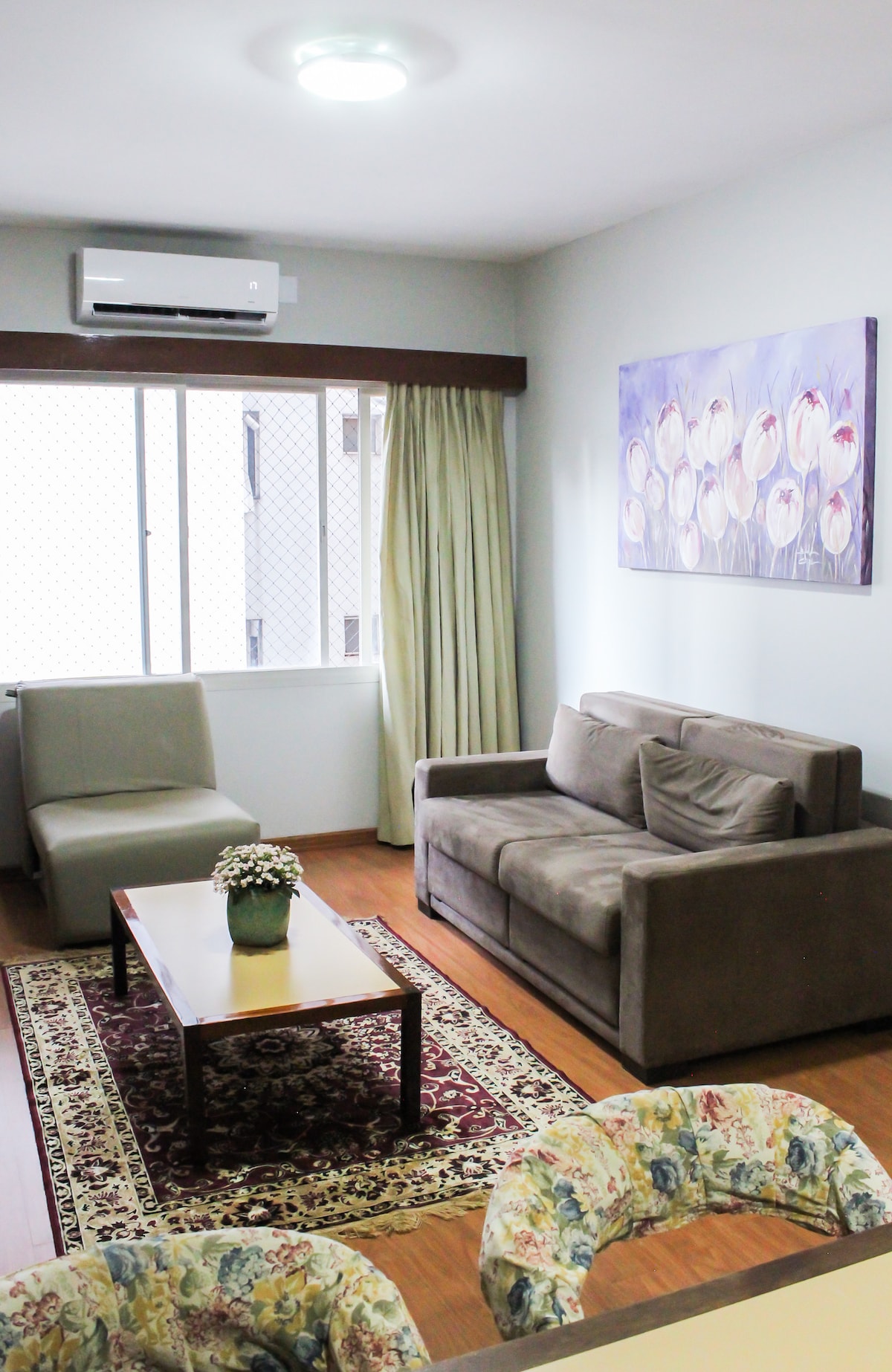 Você vai adorar! Apartamento mobiliado e muito bem equipado, com cama confortável, ar condicionado, sala com Smart TV e sofá cama, cozinha completa com refrigerador, freezer, microondas, fogãozinho elétrico e utensílios básicos. Banheiro amplo e com box. Varandinha privativa. Condomínio diferenciado com piscina e academia. Atendimento personalizado durante toda a estadia.