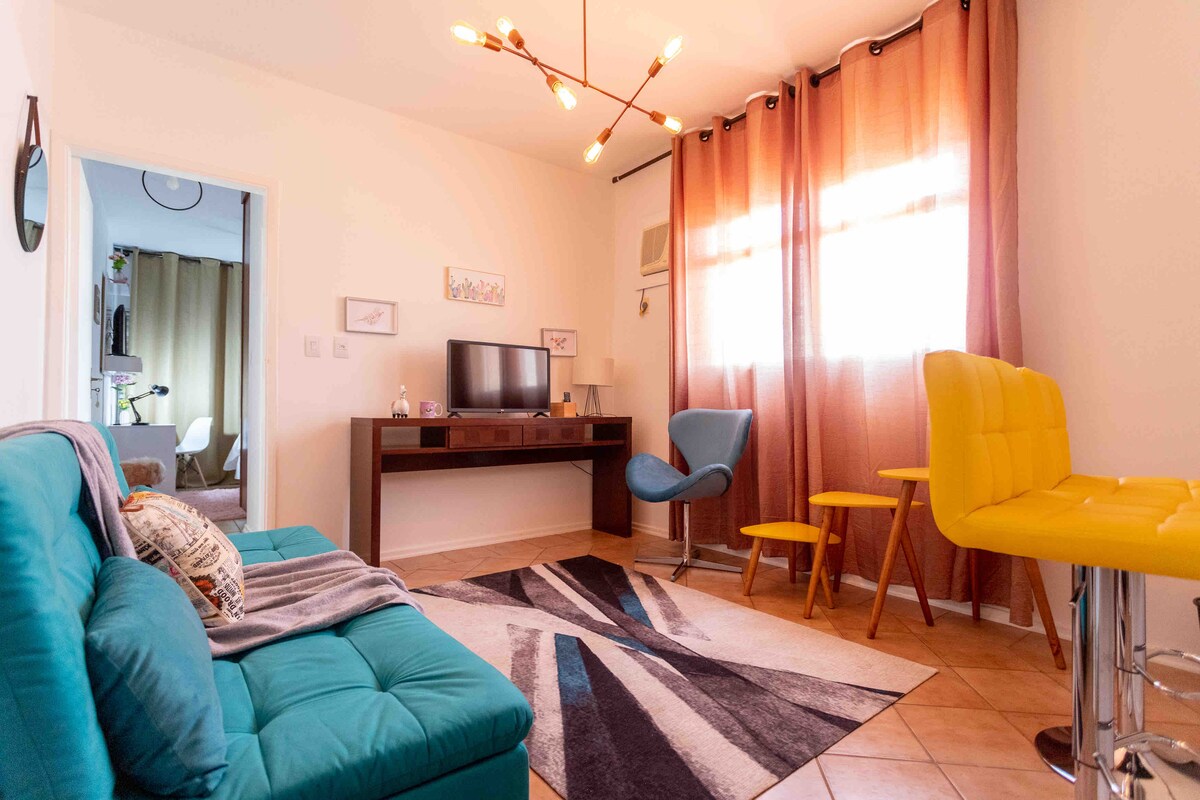 O apto tem AR CONDICIONADO NA SALA E NO QUARTO, para oferecer mais conforto a nossos hóspedes durante o verão ! A planta oferece quarto privativo, independente da sala e cozinha Foi pensando em lhe proporcionar estadias agradáveis, conforto e praticidade, que planejamos cada detalhe deste apartamento. Nossa intenção foi criar um espaço onde você possa se sentir o mais "perto de casa" possível ! Acolhido. SEJAM SEMPRE MUITO BEM-VINDOS!!!