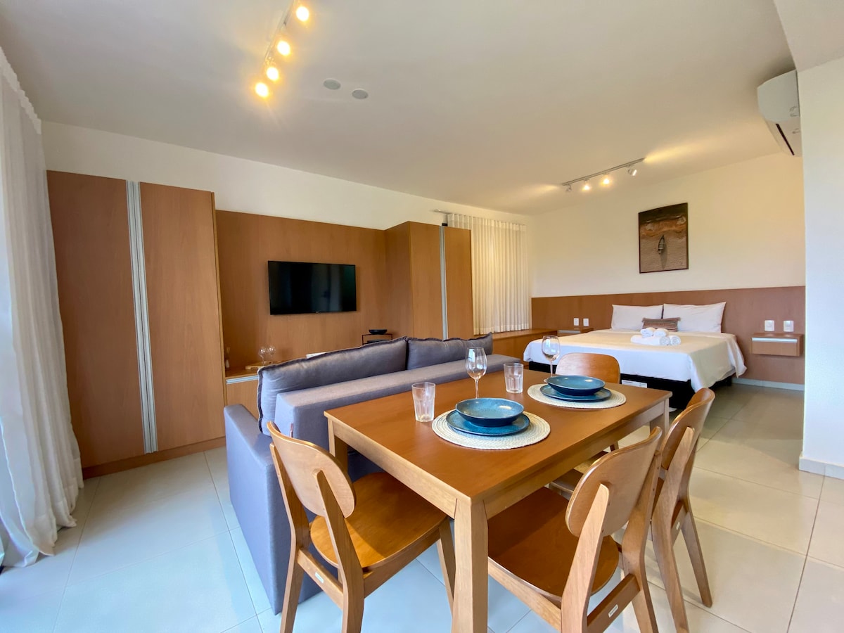 Apartamento Studio novo e moderno localizado em região nobre de Ribeirão Preto , conta com Wi-Fi , ar condicionado , cozinha completa , smart Tv 40’ , Academia BlueFit no prédio , Air fryer , vaga de garagem e área de lazer completa , piscina , sauna , salão de jogos , espaço gourmet , espaço coworking para trabalho , home market 24h e a melhor localização da cidade , na avenida Presidente Vargas a 3 minutos do Ribeirão shopping e próximo aos melhores parques , bares e restaurantes de Ribeirão.