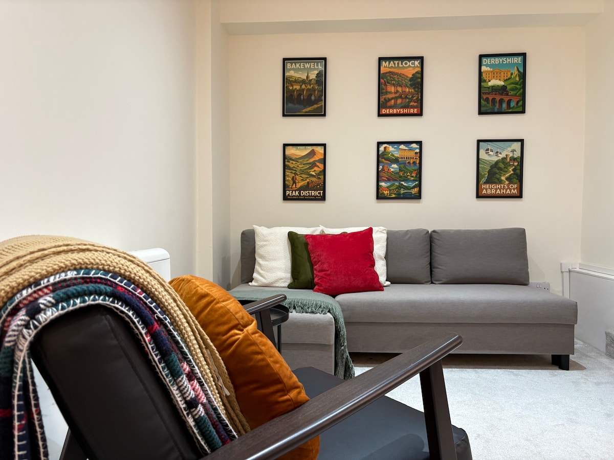 Experience luxury and comfort in this exquisite short-stay apartment. It boasts high-quality fittings and is meticulously furnished to create a harmonious blend of modern convenience and timeless charm. It's fabulous location at the Gateway to the Peak District, very close to the Peak Forest Canal and wonderful famous Peak District walks. Welcome max 2 dogs at £20 per dog payable to the host. 10% off breakfast voucher at Bridge 42 - a short walk!. Paid parking in car park or free street parking.
