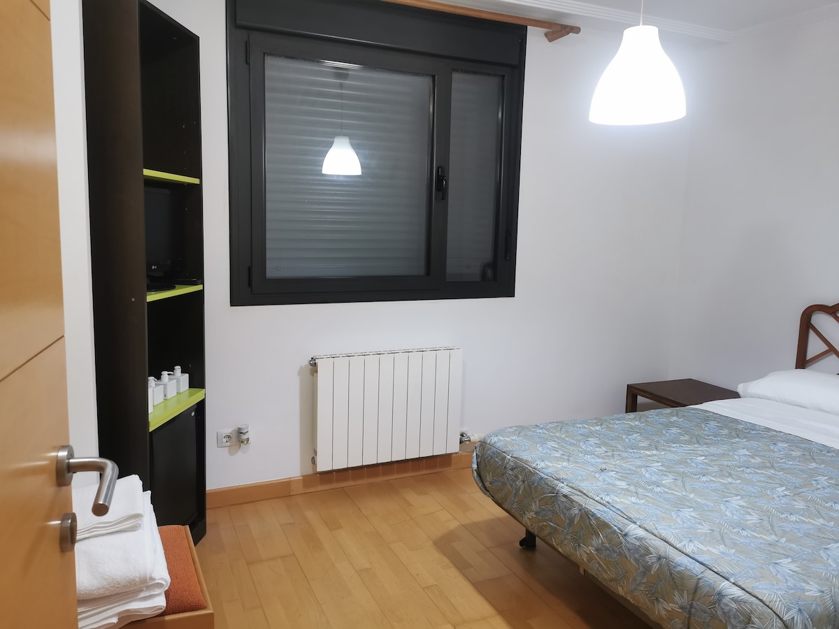 Apartamento en el centro de Manzanares el Real. Dispone de calefacción y aire acondicionado. Terraza amplia con estupendas vistas a la Pedriza y al pueblo. Ideal para una persona o para seis. Urbanización con piscina. Tiene un gran supermercado Día en la misma urbanización. Tres habitaciones, dos de ellas con cama de matrimonio y una con dos camas de 90 (cama nido), baño completo y aseo. Salón-comedor amplio y luminoso con un cómodo sofá tipo cheslong. Está en una tercera planta sin ascensor.