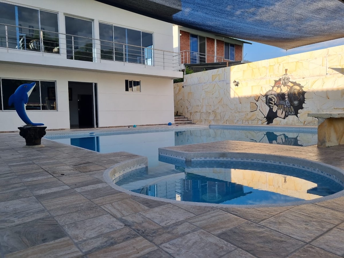 Disfruta con toda la familia en este fantástico lugar, con muchas zonas para divertirse, amplios espacios con estilo y comodidad para el descanso la diversión ( piscina privada), alcobas con aire acondicionado y ventiladores camas Queen y Keen de lujo . A 3 minutos de piscilago, Lago Sol, piscinas termales, Ricaurte y Girardot, a 1:30 del desierto de la Tatacoa, a 40 minutos de Ibague