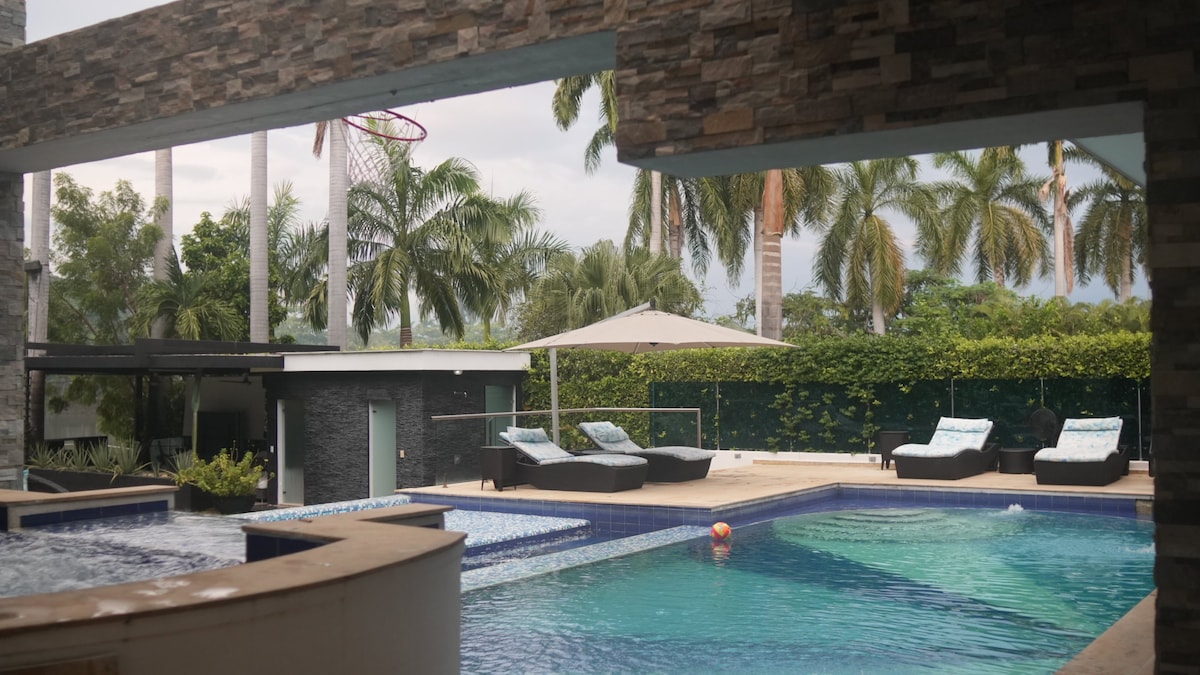 Beautiful modern house within a condominium with spaces for walks, very bright, with high ceilings, bathrooms with natural light to see the sky while you shower and ideal for relaxing. WiFi, Netflix, Air conditioning in main room, powerful fans in other rooms and areas, private structural pool, large back garden with forest. Parking for 3 cars, one of them covered. Laundry area and covered terrace. 15 min. to Carulla Market. Delivery for everything in the area.